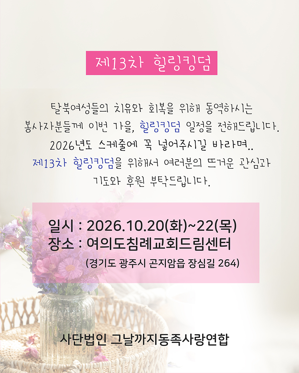 제목: 2026년 10월 20일(화)~22일(목) 제13차 힐링킹덤 / 여의도침례교회 드림센터
